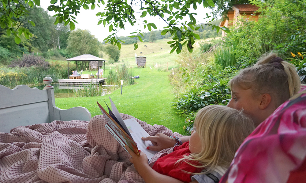 SCHWALM | Den so ziemlich coolsten Schlafplatz für abenteuerlustige Familien haben wir am Eingang zur Schwalm gefunden, in Schrecksbach. Auf dem Ferienhof Morgenstern könnt ihr in urigen Schäferwagen oder im Stelzenhaus schlafen. Dort, wo sich Fuchs und Hase „Gute Nacht“ sagen könnt ihr um die Feuerschale herum sitzen und den Fröschen zuhören.