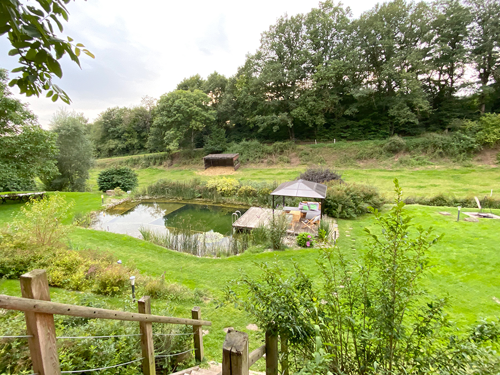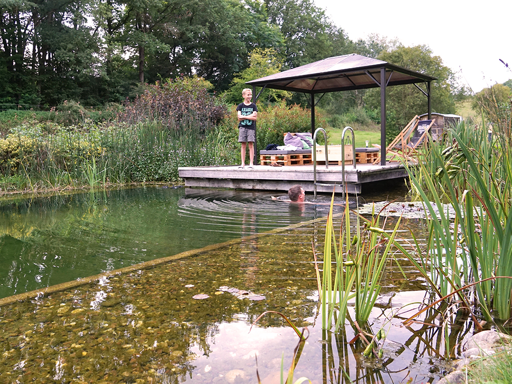 Der Schwimmteich ist wunderschön angelegt, aber Leute, ich sag es dazu: EISKALT.  Bei 30° im Schatten bestimmt genau die richtige Temperatur. Ich für meinen Teil hab lieber fasziniert den Fröschen beim Baden zugeschaut, die es hier nämlich auch gibt.