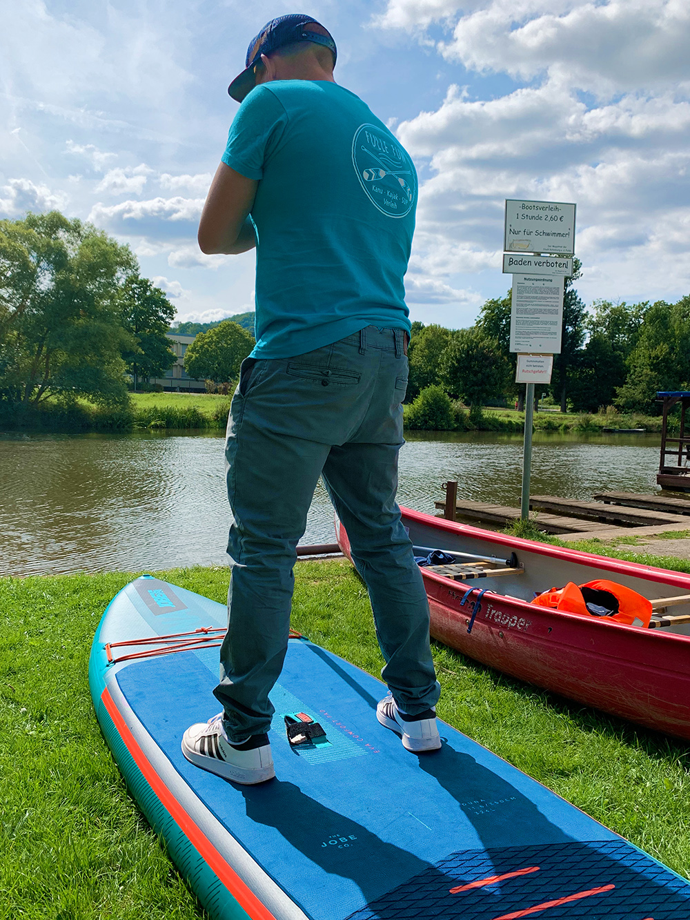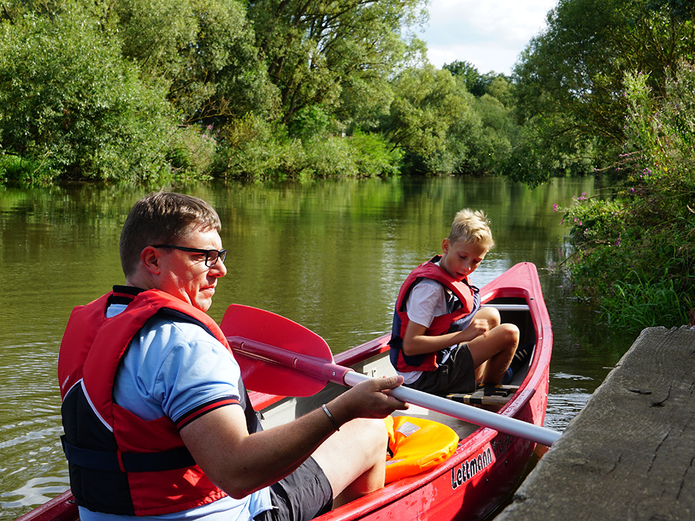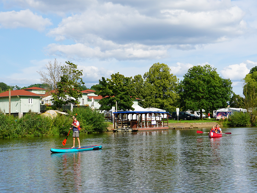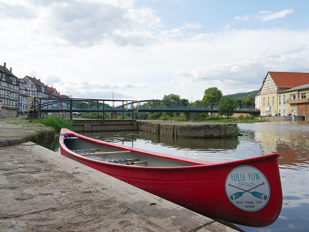 Rotenburg an der Fulda. Wo wir mit unserem Besuch in Rotenburg schon mal am Wasser sind, geht’s auch rauf, auf die Fulda. Wir haben uns mit Christina und Frank vom Team „Fulle Fun“ am Campingplatz verabredet, um von dort aus eine Kanu-Tour zu starten. Also los geht’s.