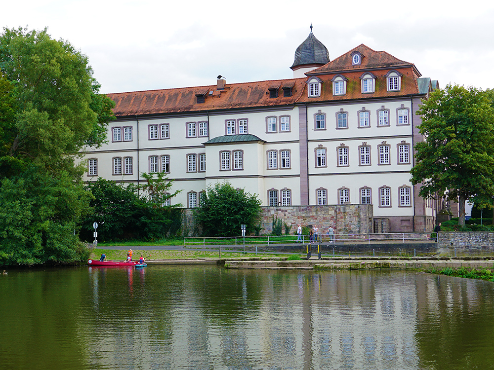 Ausstieg am Wehr mit Schloss-Kulisse